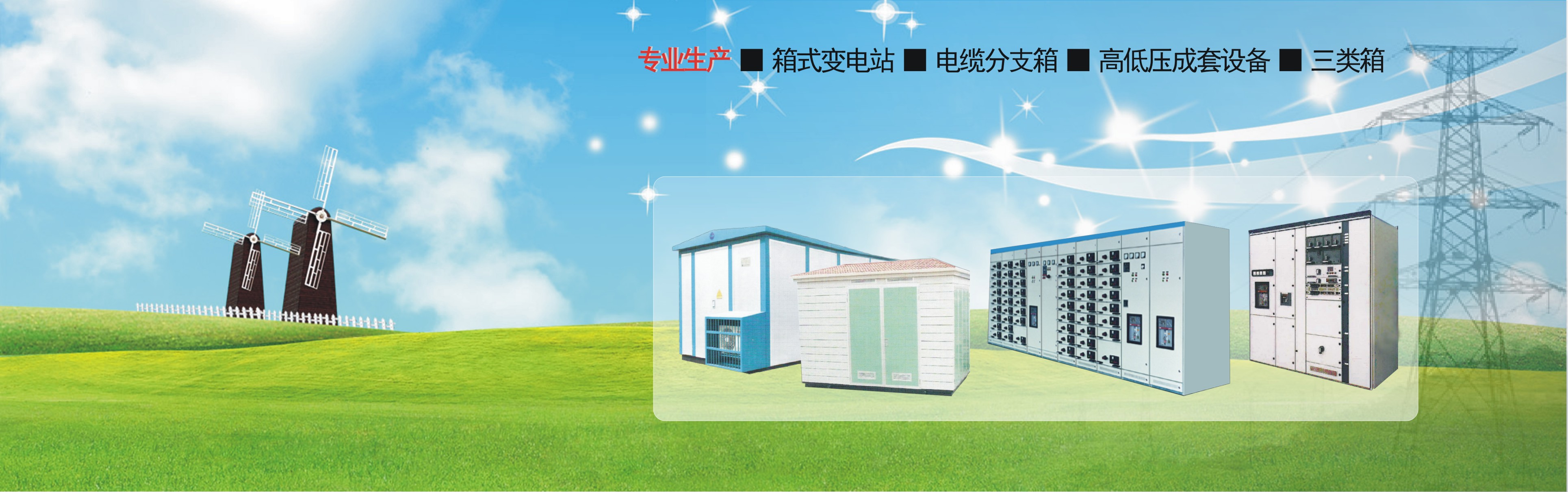 公司自行、聯合研制開發箱式變電站、高低壓開關成套設備等系列產品,廣泛應用于能源、電力、工礦、通訊、交通、石化、冶金建筑等領域。