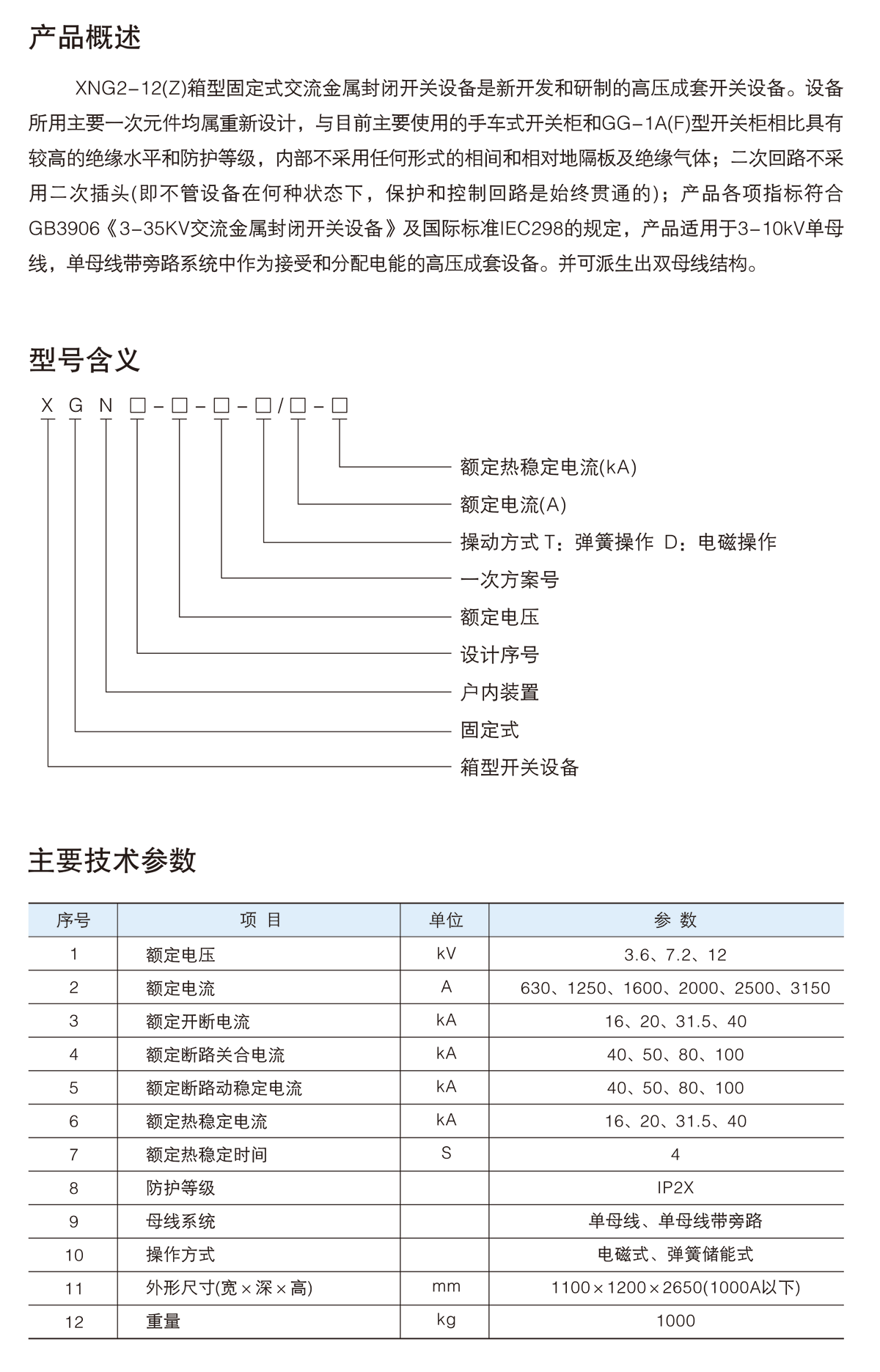 XGN2-12(Z)箱型固定式交流金屬封閉開關設備